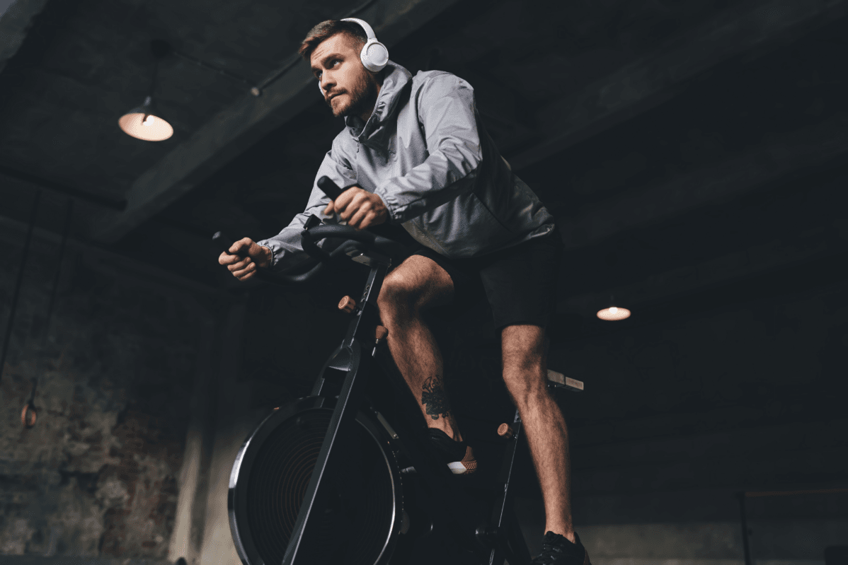 Bike com autogeração e múltiplos níveis de resistência para treinos cardiovasculares variados.