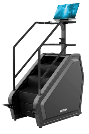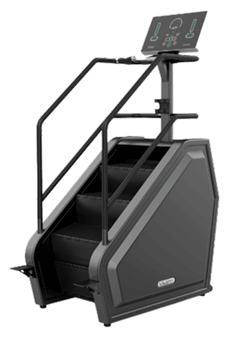 Simulador de escadas com controle de velocidade e construção robusta para uso contínuo.