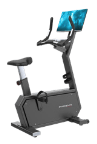Bike com autogeração e tela, voltada a academias premium e experiência completa do usuário.