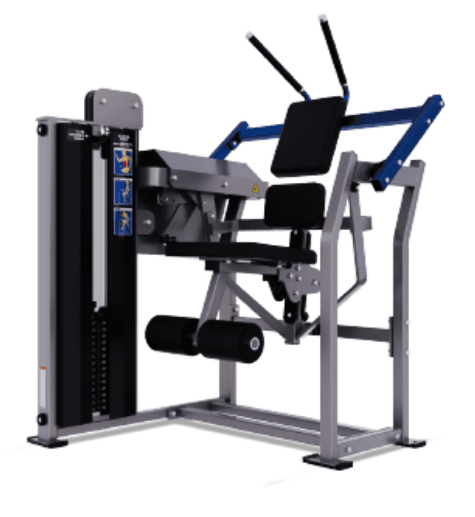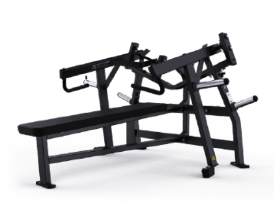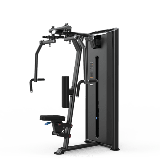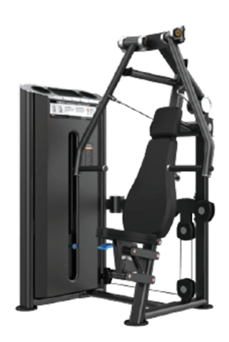 Equipamento versátil para peitoral e deltoides posteriores, com execução fluida.