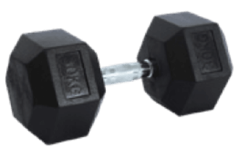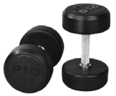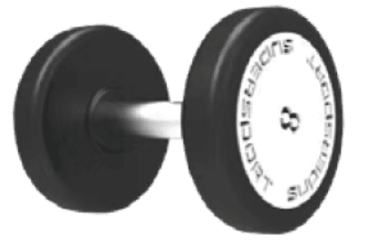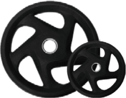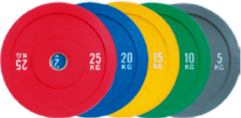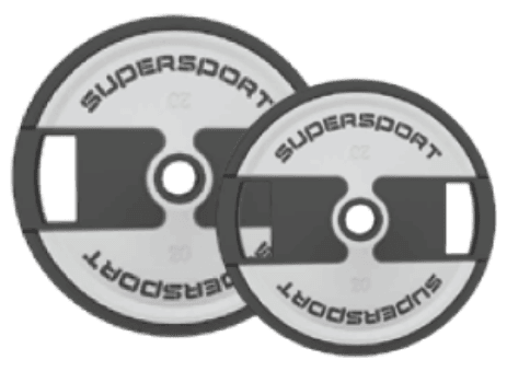 Anilhas revestidas em borracha com pegadas para manuseio seguro e prático.